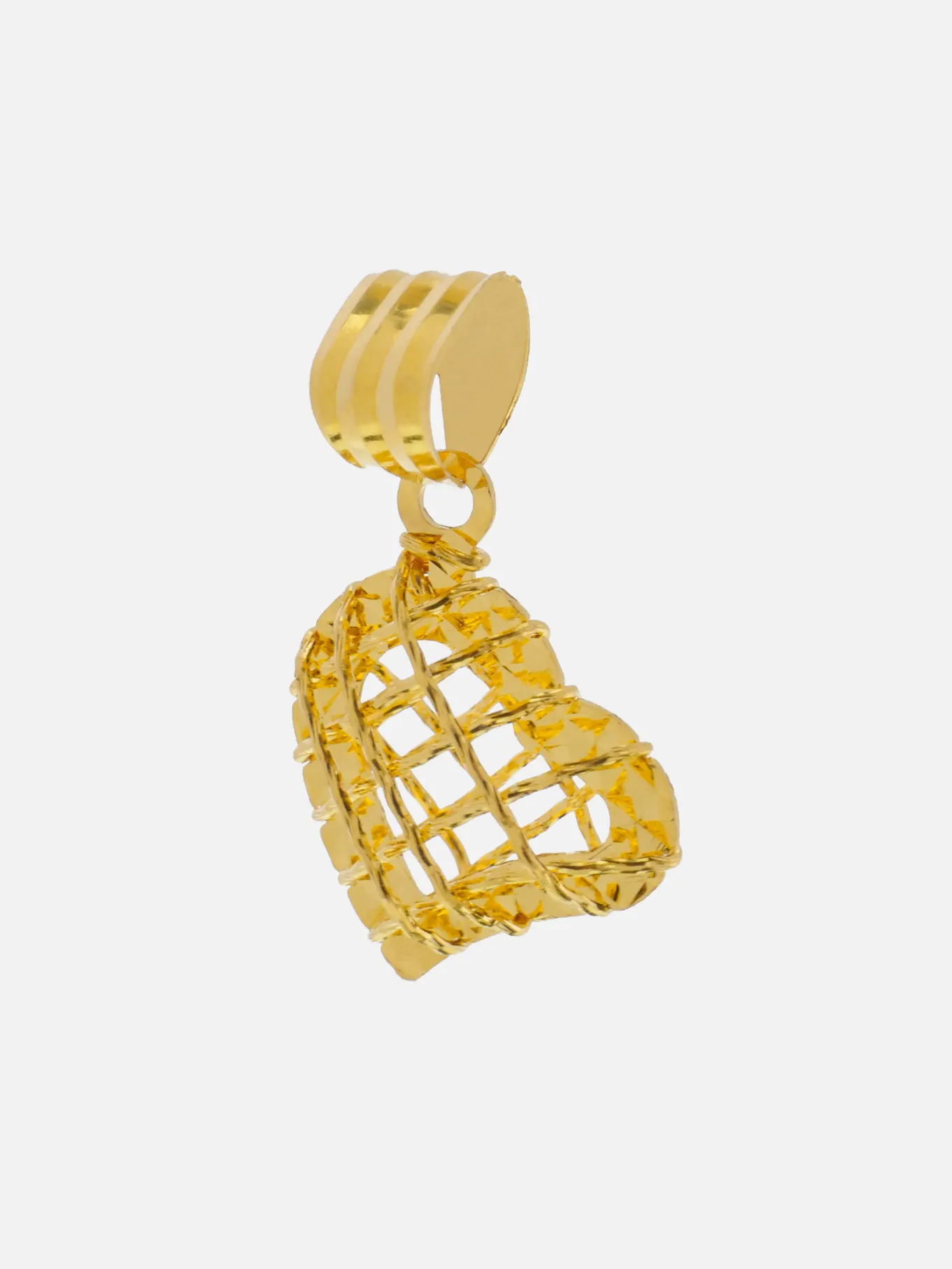 This exquisite pendant is expertly crafted with intricate patterns that are formed by delicately twisting wires together, resulting in a heart that is as unique as it is beautiful.